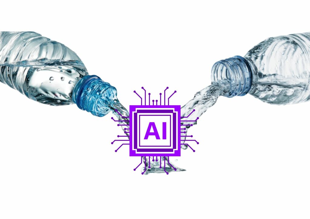 AI stands in need of water for constant cooling, it even requires the same amount of water as people drink from bottles…globally.  So let’s use water as a visual reference.